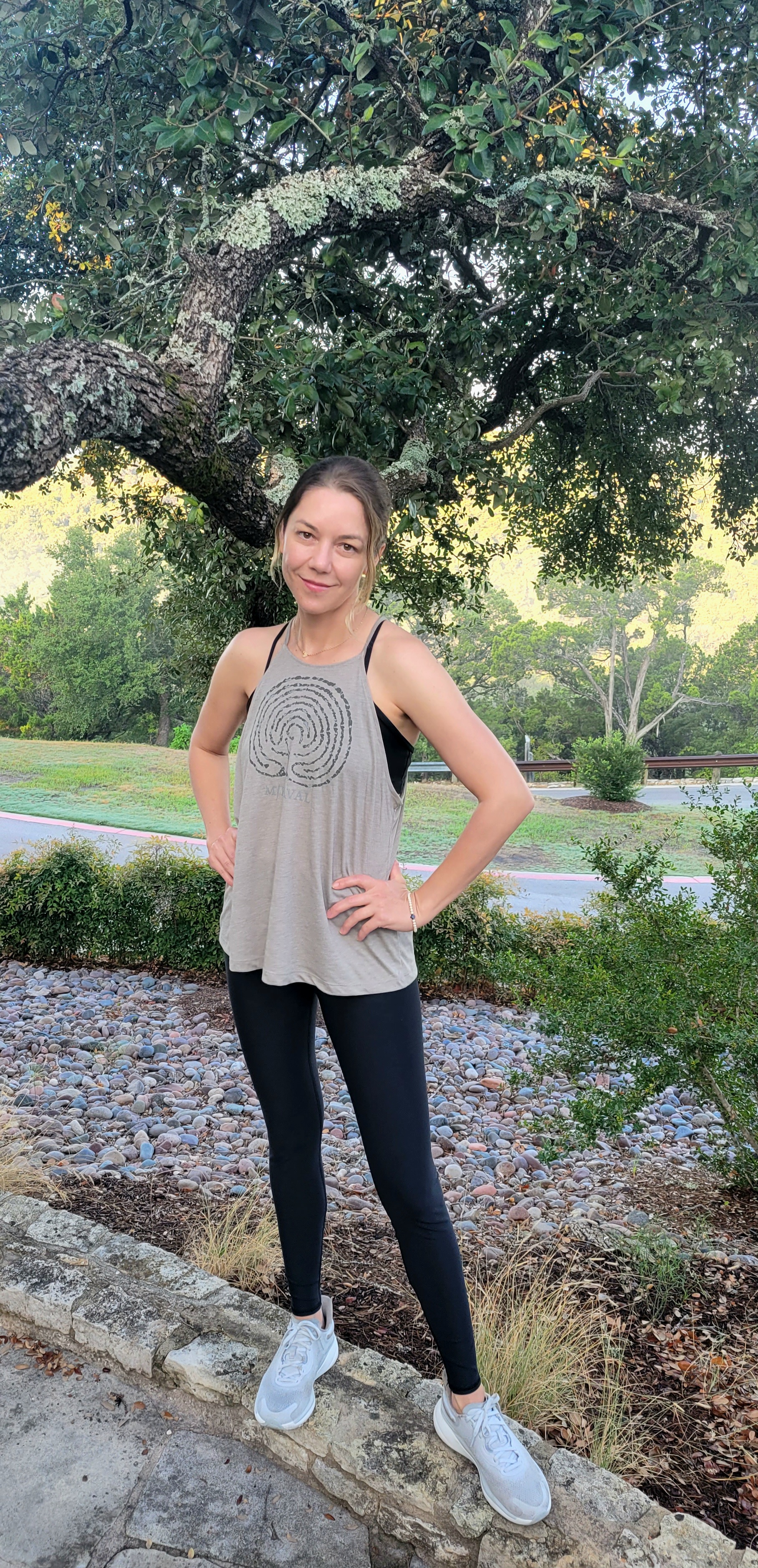 I woke to the sound of muffled voices in the wind. Outside our patio were hikers at 7AM entering the woods. It was our last day and we had one more activity planned, The Quantum Leap from a 35ft pole. Sounded ominous. We dressed and walked to grab coffee and our favorite smoothies. The green detox is delicious and I followed it with some overnight oats. The coconut milk, cacao nibs, and dates added a decadence to it. My husband opted for one of the ham and cheese sandwiches. We sat and enjoyed the view, taking in the last morning. I was lighter. There was a feeling of euphoria and I can’t help but laugh that this place really did the work it claims to. The staff is overly welcoming because they are, actually, genuinely happy people. I see I would be too coming here daily. This picture is of me in real time after my coffee and before we headed back to pack up our belongings.