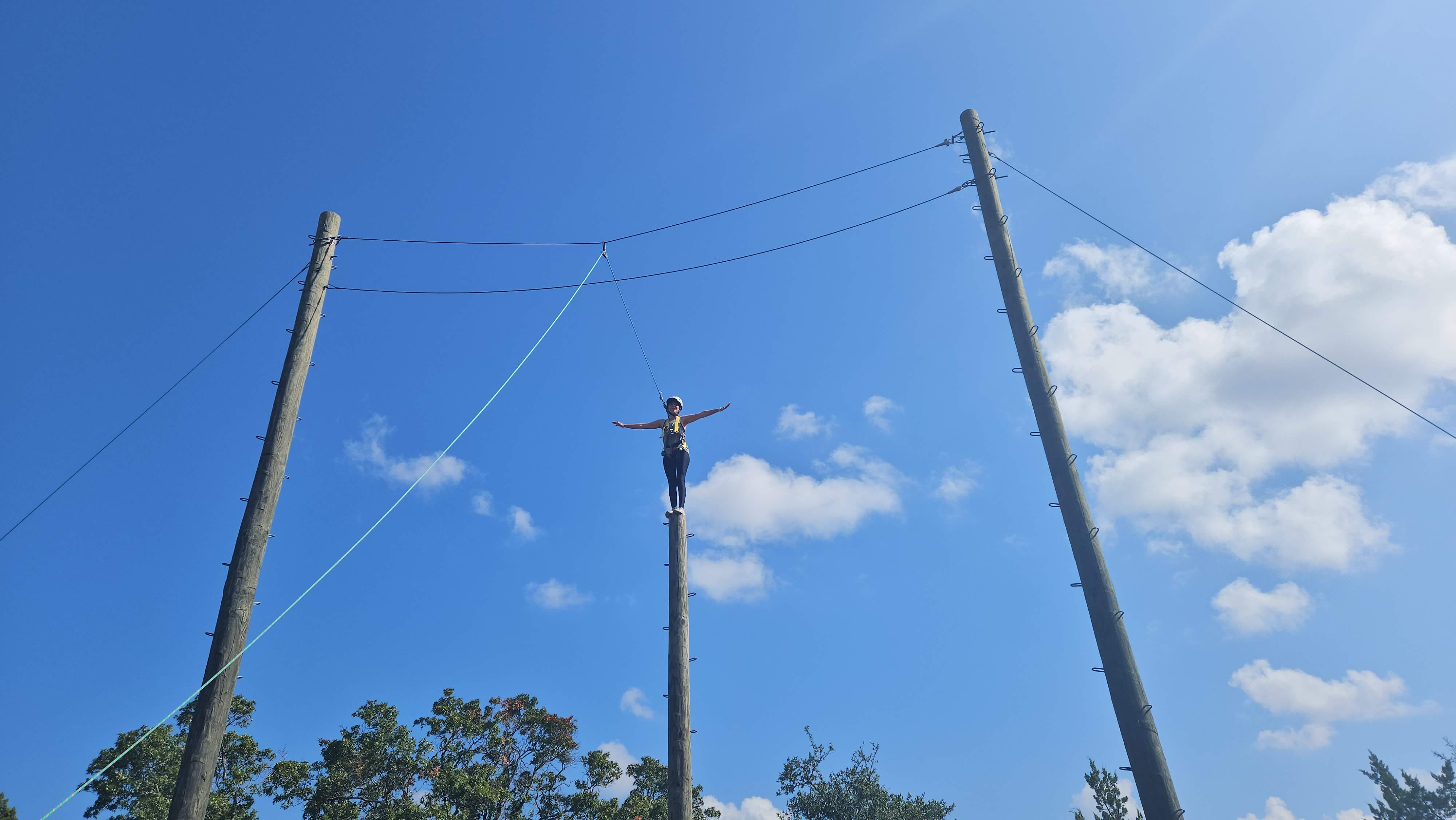 Dylan saw my nerves and asked for us to warm up by naming our favorite song. I told the group mine was Rufus du Sol – New Sky. It was one of the last songs I played driving to Austin, so it was fresh on my mind. My underarms were drenched in sweat. I always sweat more when I am nervous. We walked as a group to the pole site and harnessed up. My adrenaline was coursing through my veins.
